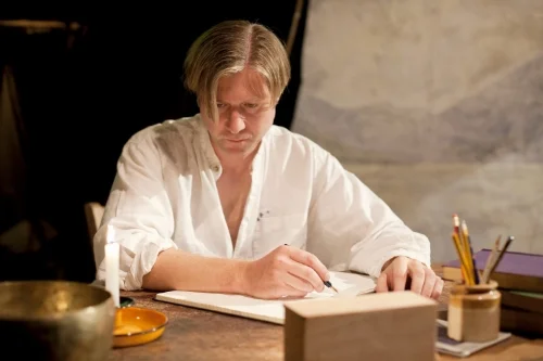 GG: In the play, you bring together those two aspects you’ve just spoken about – astrology and Ted Hughes’s relationship with Assia Wevill. How would you describe astrology as you portray it in the play? It seems to be used as a way to understand what Hughes might be thinking or what he might be mistakenly thinking?